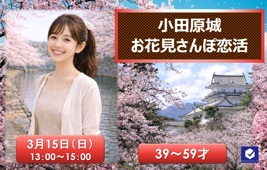 【小田原城 お花見さんぽ】 女性限定QUOカード500円(早期申込特典)☆★歩きながら、話しながら。桜の下で距離が縮まる☆