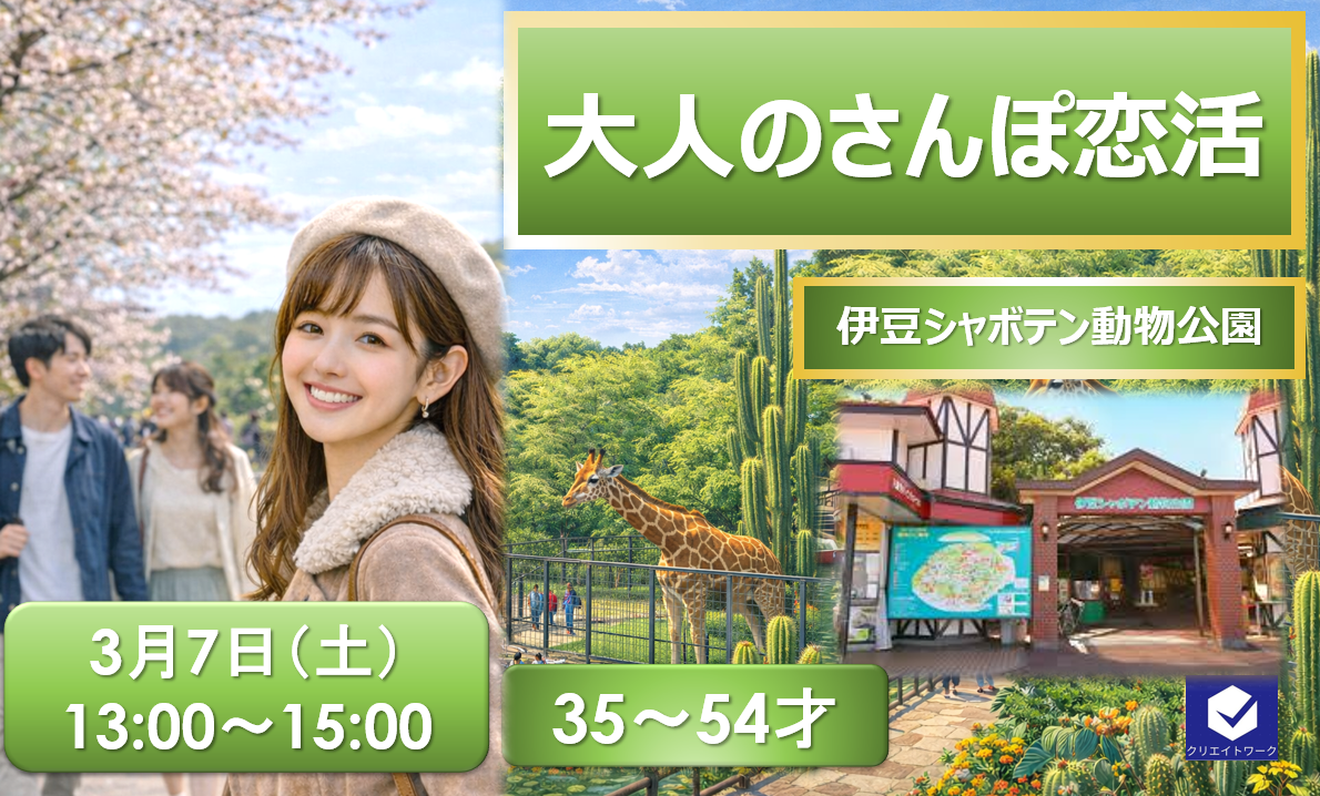 【静岡伊豆シャボテン公園・大人のさんぽ恋活】(入園料2800円込)★女性早期予約特典あり★〜歩きながら、自然に距離が近づく出会い〜