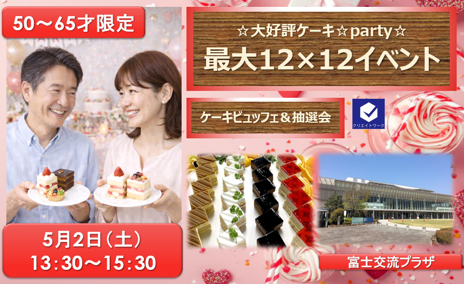 『超早割中』【富士・大好評ケーキParty】☆★最大24名☆★50才~65才の恋活イベント!