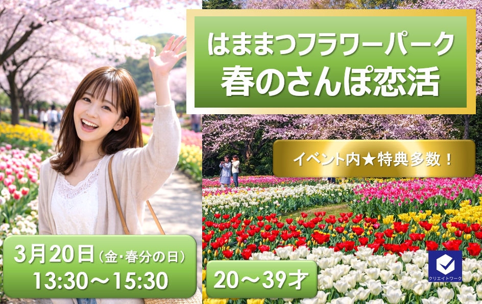 【浜松・春の大人のさんぽ恋活】(入園料込み)「20代・30代」〜歩きながら、自然に距離が近づく出会い〜