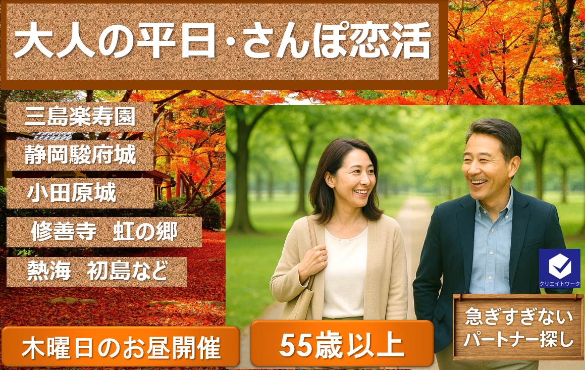 そんな55以上の方に向けた、歩きながら自然に交流できる平日限定の恋活イベントです!